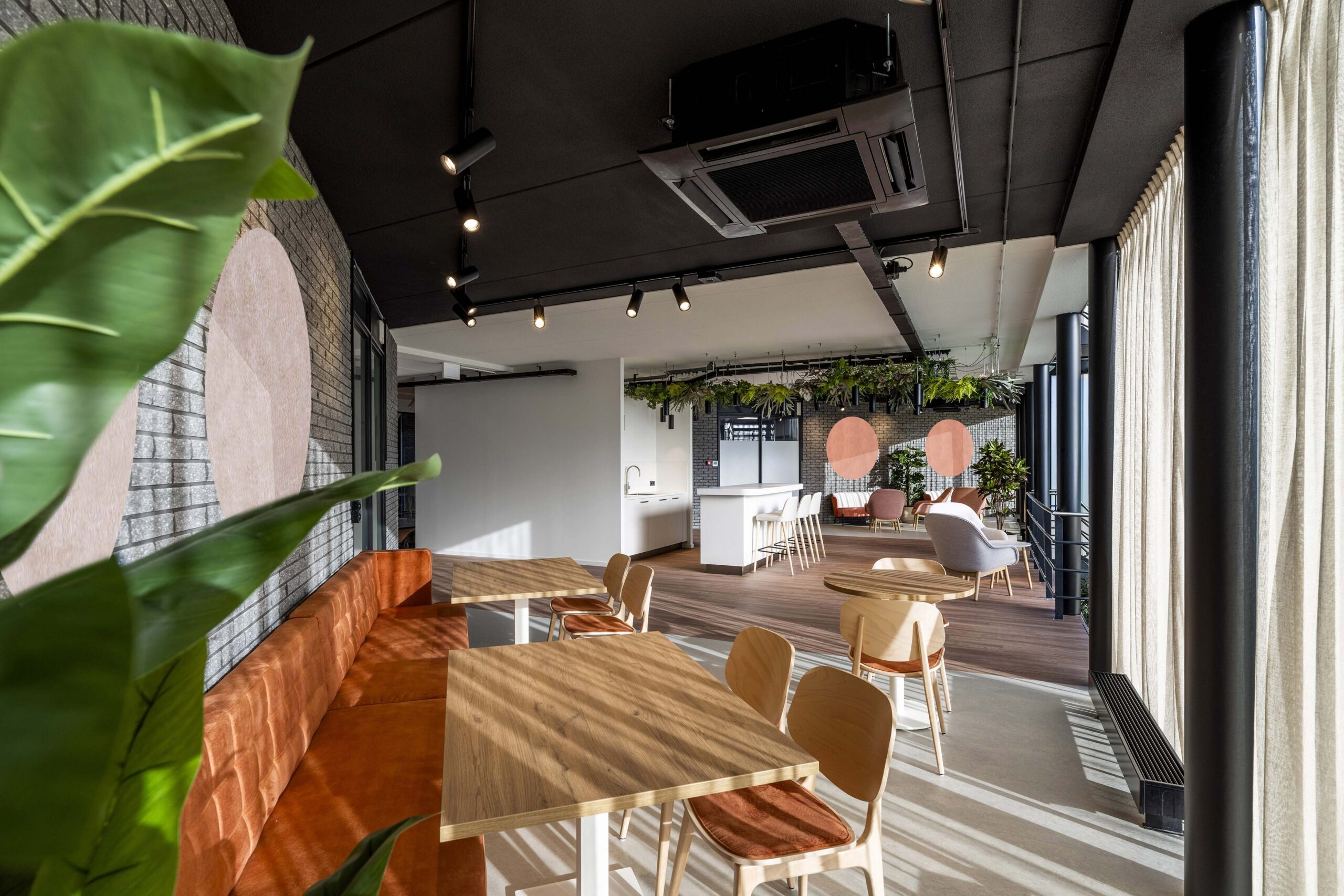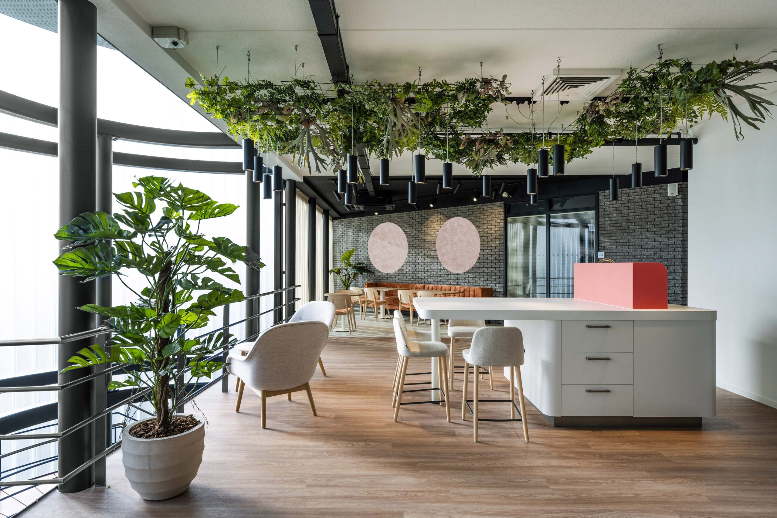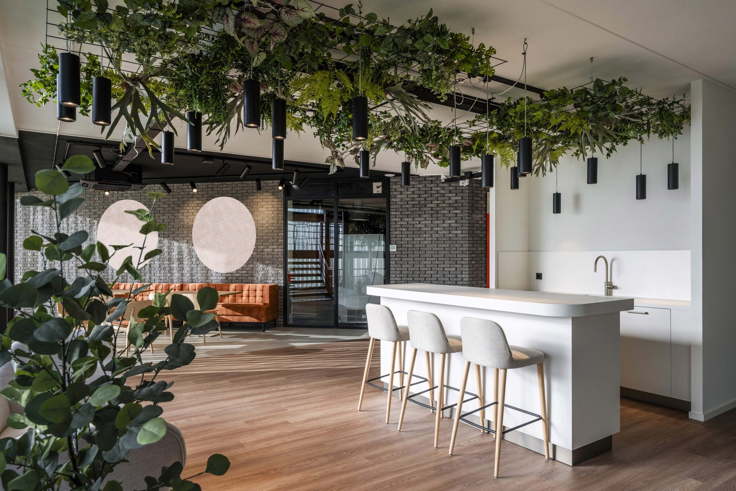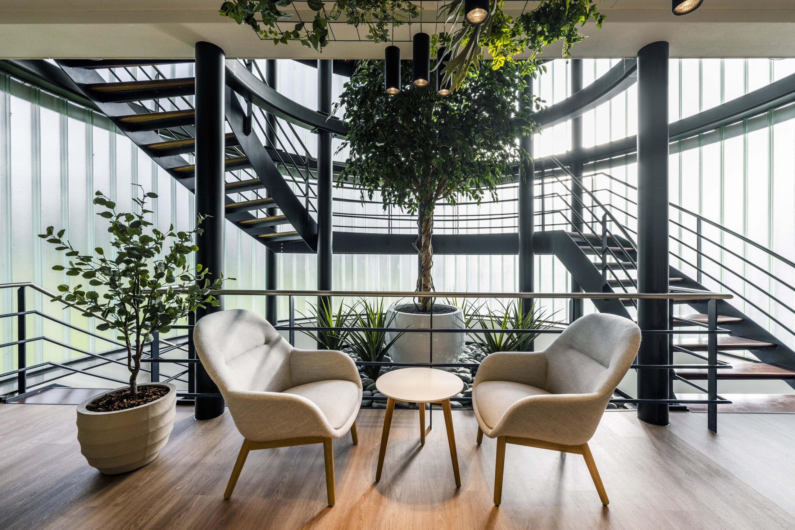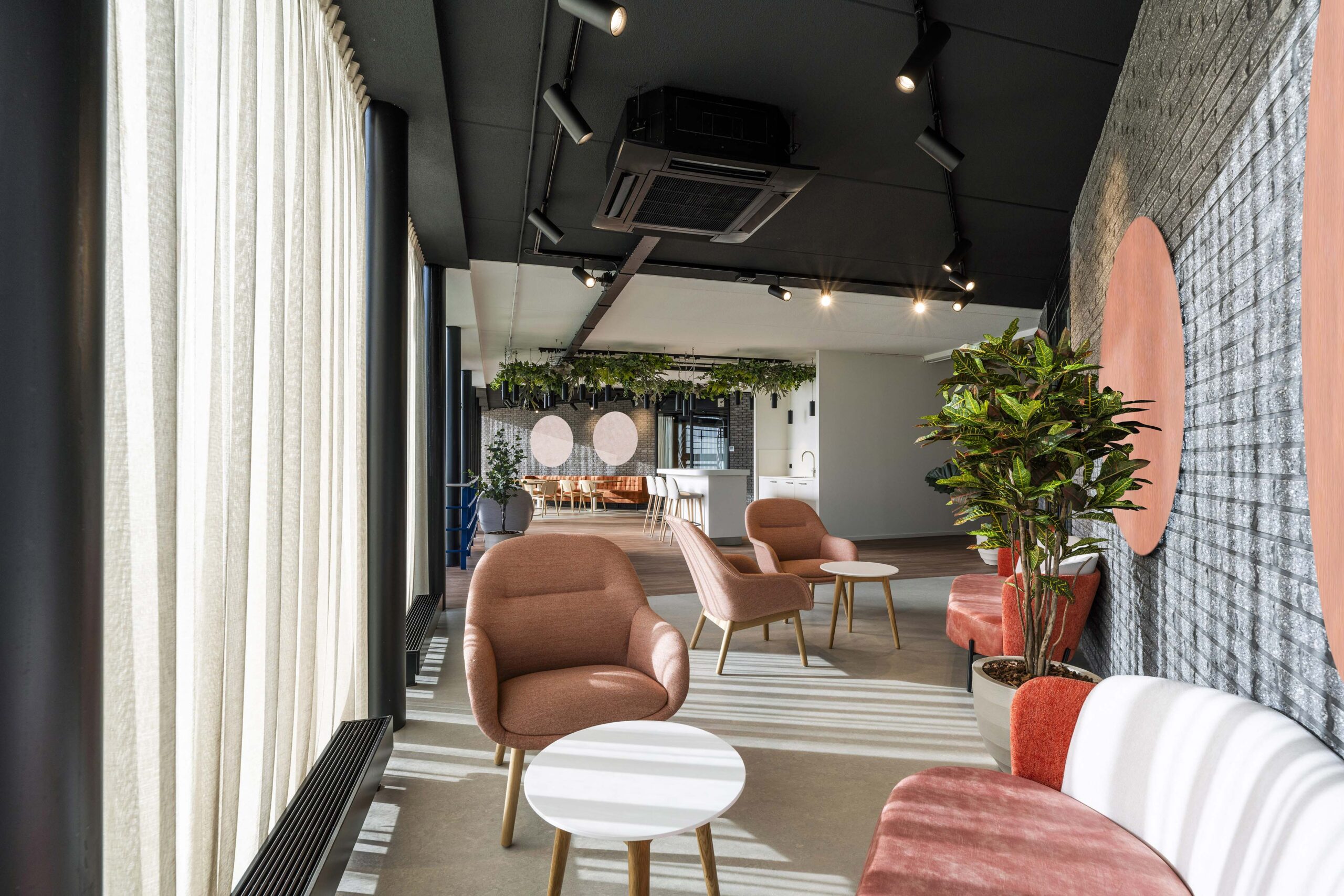 Met het ontwerp van de architect veranderde de hal in een multifunctionele plek waar gewerkt, overlegd en vergaderd kan worden én waar ruimte is voor spontane ontmoetingen. Zo krijgen de bedrijven in het gebouw niet alleen extra ruimte voor verschillende werkvormen, maar kunnen zij ook een warm welkom bieden aan bezoekers en externen.