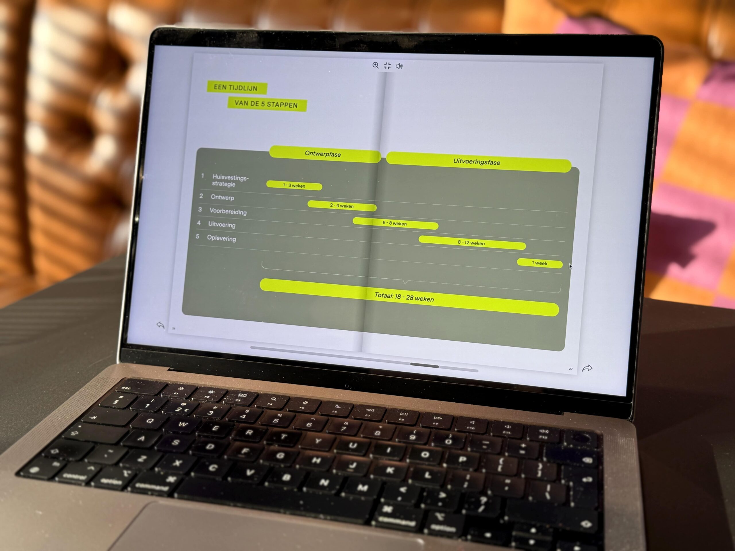The lead time is determined by several factors, such as the speed of decision-making, supplier lead times, the timing of execution, and local conditions. In our our 5-step plan on pages 26 and 27, you will find the timelines we typically follow for each phase.